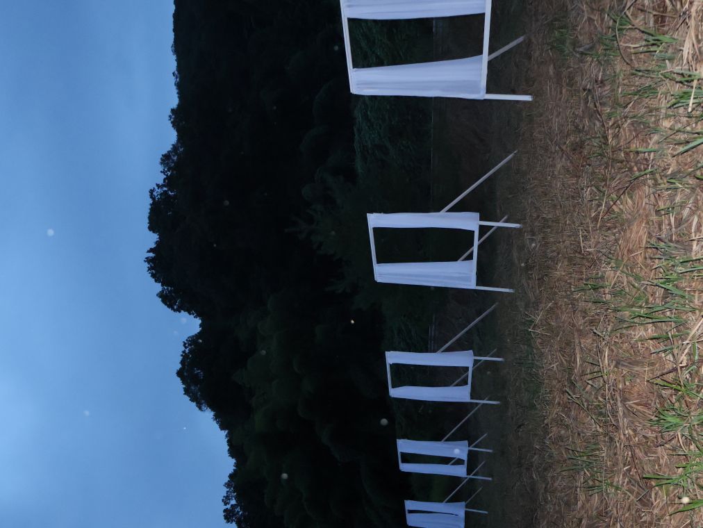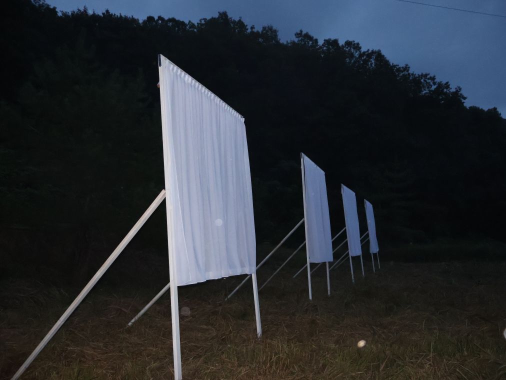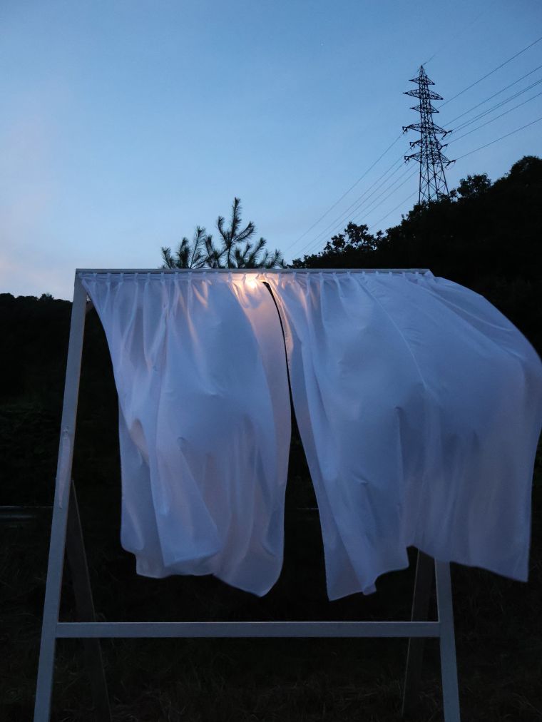3650×2527×2750mm ×5基 ポリエステル製の布、木材、カーテンレール、金属製フック、LEDライト、糸